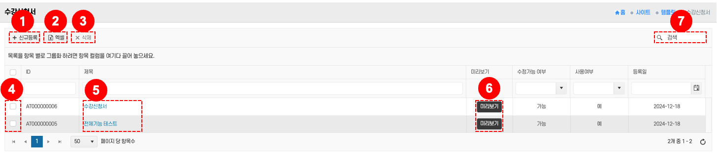 등록된 수강신청서의 제목이 표시된다.