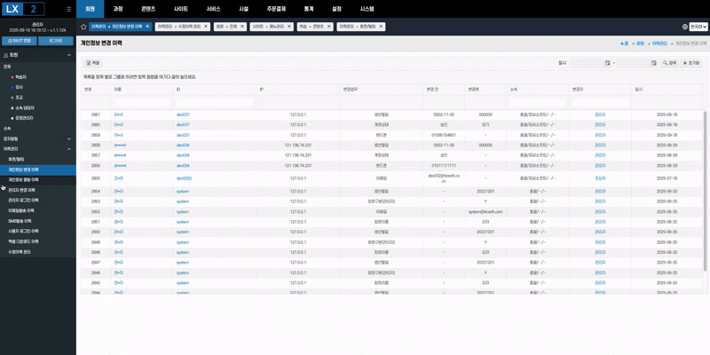 • 시스템-이력관리-개인정보변경이력