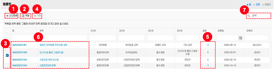 - 교육 과정 운영 시 반복적으로 활용할 수 있는 기본 틀을 등록하는 데 사용된다.