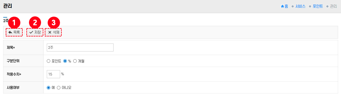 - 입력된 포인트 관리 설정을 저장한다.